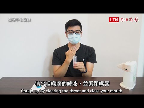 唾液檢體採檢流程 1、確認口罩有遮住口鼻。 2、以酒精性乾洗手將雙手洗淨。 3、打開檢體盒蓋。 4、做出清喉嚨動作,清出咽喉處唾液、緊閉嘴唇使唾液分泌並停留在口腔內約1分鐘。 5、拿下口罩將1至2ml唾液,輕柔吐入檢體盒內,避免唾液沾到檢體盒外。 6、戴上口罩。 7、蓋好並扭緊檢體盒蓋,確認沒有滲漏。 8、以紙巾將檢體盒表面擦拭乾淨。 9、將檢體盒交給採檢人員。 10、最後再以酒精性乾洗手將雙手洗淨。